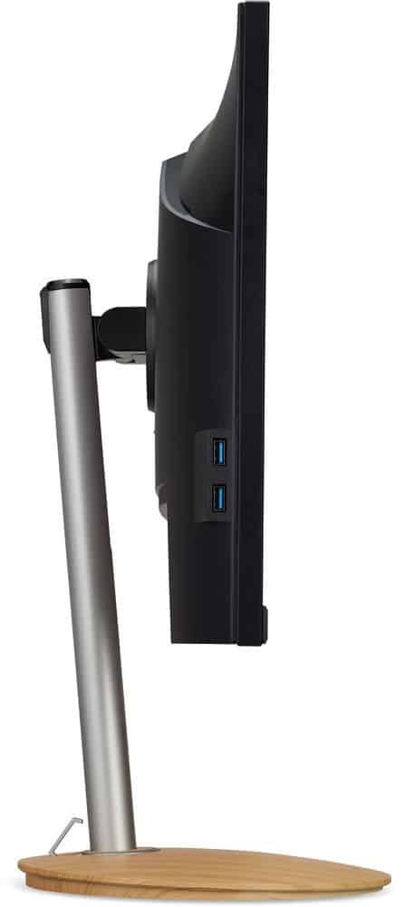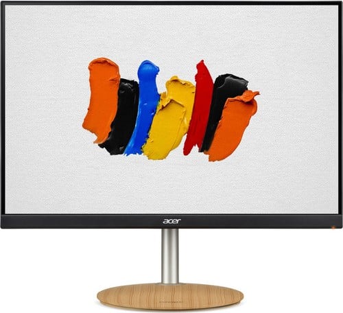 The Acer CM2241W features the ConceptD minimalist design that you currently won’t see on any other monitor in the market. The chassis has a matte black finish that’s accented with a brushed aluminum stand fixed to a wood-textured base. The display is bezel-free on three sides, but you will still see very thin inner borders when it’s in use.