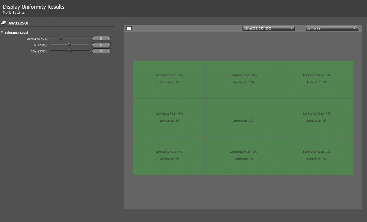 Panel uniformity for the test sample did not have any major issues, although the sides had a slight variance of 7 cd/m2 compared to the center. We know it’s not a uniformity defect since both the left and right corners had the same differences, so it’s probably caused by the curved display. Note that this can change with every unit made due to tolerances, so there might be some worse samples out there.