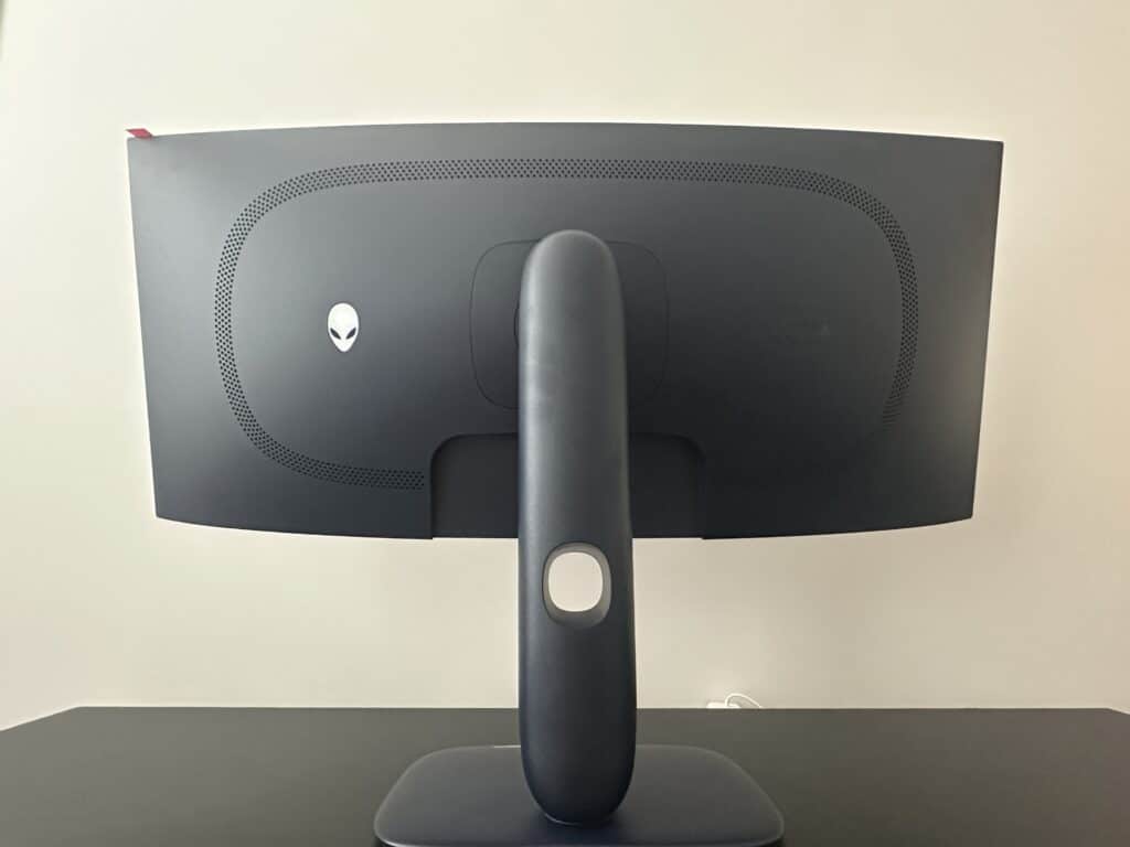 One of the first things we look at when unboxing a monitor is its controller and power button layout. The joystick for this model is at dead center under the Alienware logo, while the power button is to the right and is well-defined by an RGB LED light.