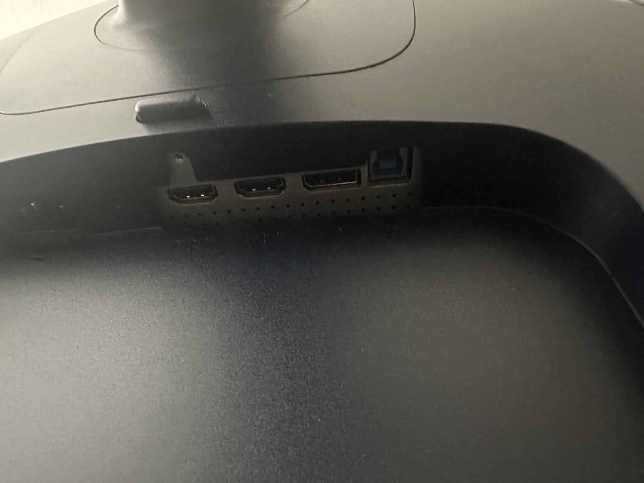 The Type-A and Type-C slots are located near the joystick for easy access to data devices like thumb drives. It’s always nice to have a convenience hub, but it would be nice to have a single cable solution for laptops. Gaming monitors are not often connected via USB-C, but some laptop gamers do so all the time.