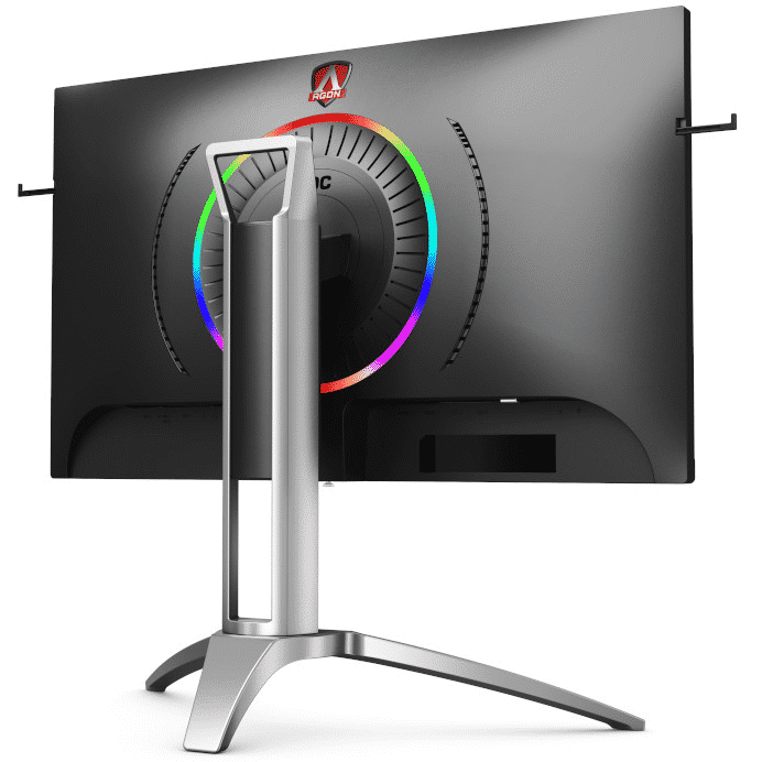 One of the attractive qualities of the AOC AG273QX is it includes valuable extras such as a pop-out headset hanger and the AGON GamePad which doubles as a remote. The latter makes swapping presets and adjusting a few settings easier, but there is also a joystick under the bottom bezel for your convenience. The rear panel of the AOC AG273QX features an RGB lighting ring which adds a glow to your setup so colored illumination themes will be doable.
