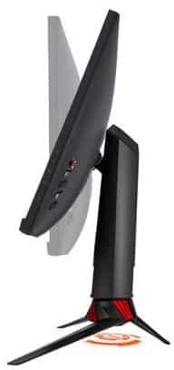 The aforementioned helix stand on the Asus XG279Q is a bit overdesigned and it needs a refresh, but its highly functional and very durable. The mechanism offers tilt, swivel, pivot, and height adjustments, so practically any normal view angle is possible with this model. It also has an LED projector at the bottom which adds an accent light for your setup.