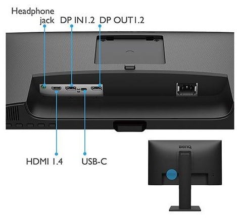 The BenQ BL2785TC has a DisplayPort 1.2, HDMI 1.4, and a 60-Watt USB-C port with DP Alt Mode for your laptop. It doesn’t have extras other than its 3.5mm port, but that’s okay since it’s affordable for a USB-C monitor. The only issue we see is its 60 Watts limit which essentially means that it can’t charge more powerful laptops while they are crunching the numbers.