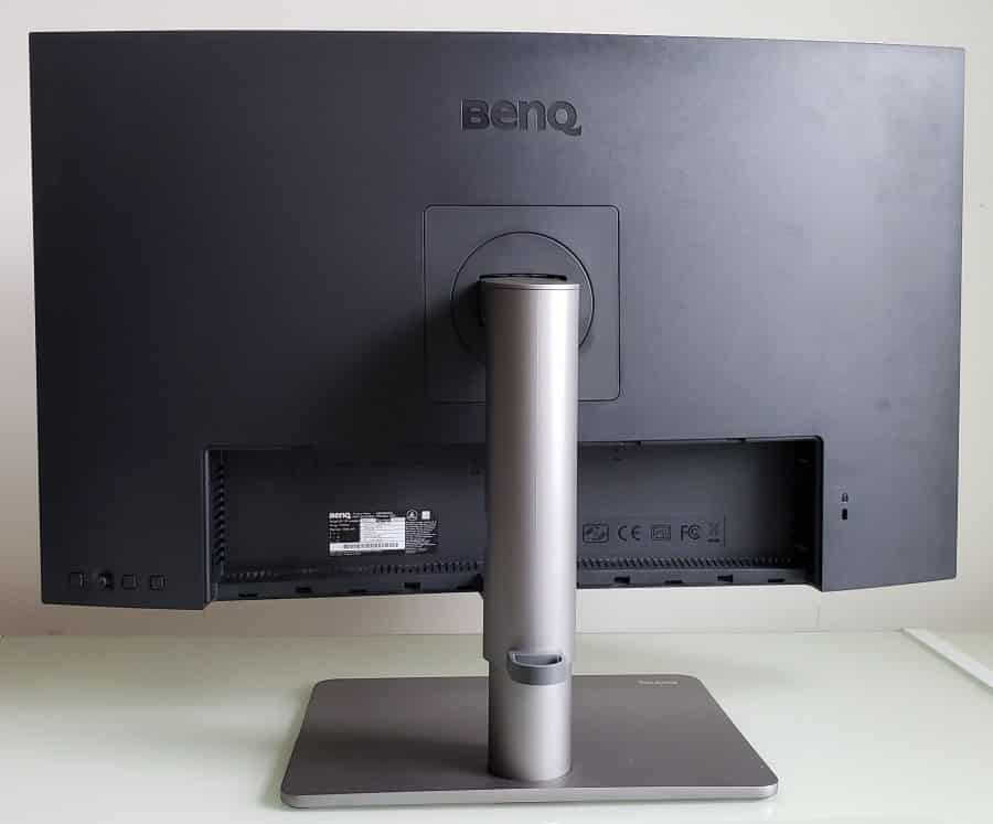 We love the metallic stand on the BenQ PD2720U which has a telescopic upright and a flat, square base which makes a good spot for your smaller things. The mechanism offers tilt, swivel, pivot, and lift, so getting a perfect view is achievable even without the help of VESA armatures. Still, you can opt for the latter, but that adds cost to an already very expensive monitor since you need to buy a separately sold VESA transfer kit from BenQ.