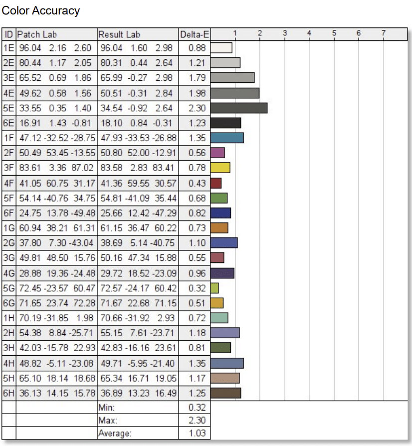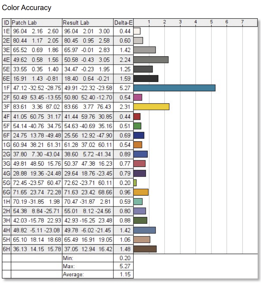 These are underwhelming results for a monitor that is claiming 99% ARGB coverage, but it is still decent for editing work. The default accuracy also changed between 1.20 and 1.03, so it is great but not at the level BenQ’s calibration report indicated. However, they are using a different colorimeter or sensor for this model than the cheaper and readily available ones we use, so there will be variances.