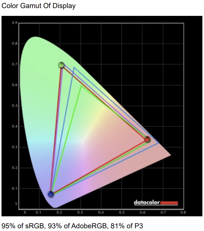 The BenQ SW272U covers 95% of sRGB, 92% of Adobe RGB, and 81% of P3 in its default state. The gamuts change depending on the presents, with P3 mode having 100% sRGB, 91%, ARGB, and 90% P3. The ARGB mode results in 95%, 93%, and 81% respectively, while the sRGB mode has 92%, 72%, and 71%.