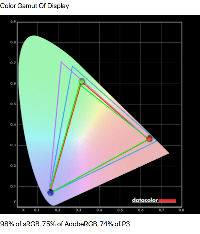 The BenQ Zowie XL2566K renders 98% of sRGB and 74% DCI-P3 which is excellent for a TN panel, but weak compared to IPS and VA models. It has a decent deltaE average of 2.13, so most users can make do without calibration. The color looks whiter or washed out, but BenQ said that they tuned it that way to improve visibility in competitive games like CSGO and Valorant.