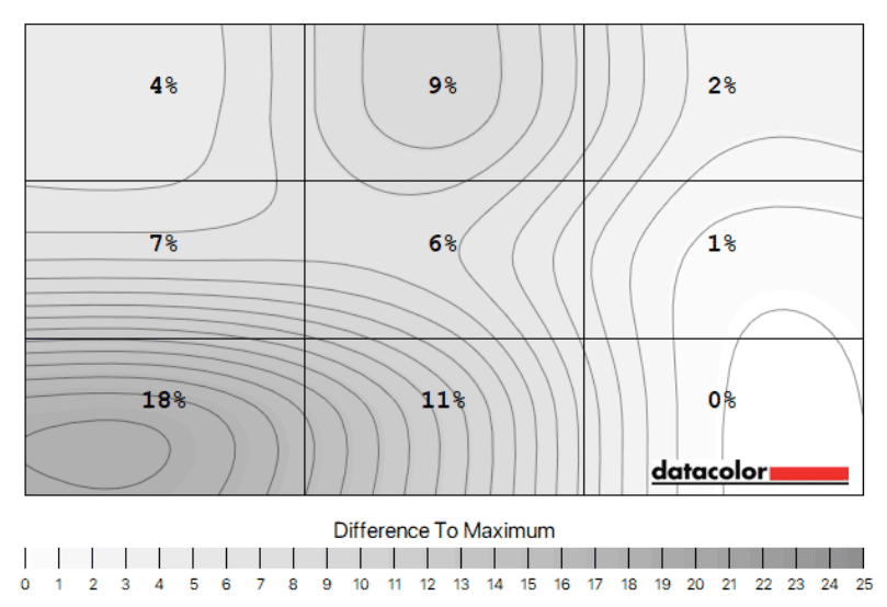 Panel uniformity from the BenQ Zowie XL2566K test sample had some issues in the lower left corner of the screen. It looked dimmer than the opposite side, so it’s quite noticeable in dark scenes where this matters the most. Note that this can vary between every monitor made due to tolerances, so there are better units out there.