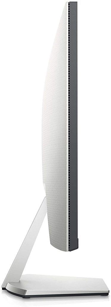 The Dell S2721D follows the design trend of the S-series, but its noticeably sleeker and a bit more sophisticated this time around. The device has a silver aesthetic all over which makes it look more professional, but it has a matte black strip at the bottom of the screen. One of the highlights of the product is its frameless design, although you can still see the thin panel borders when its in use.