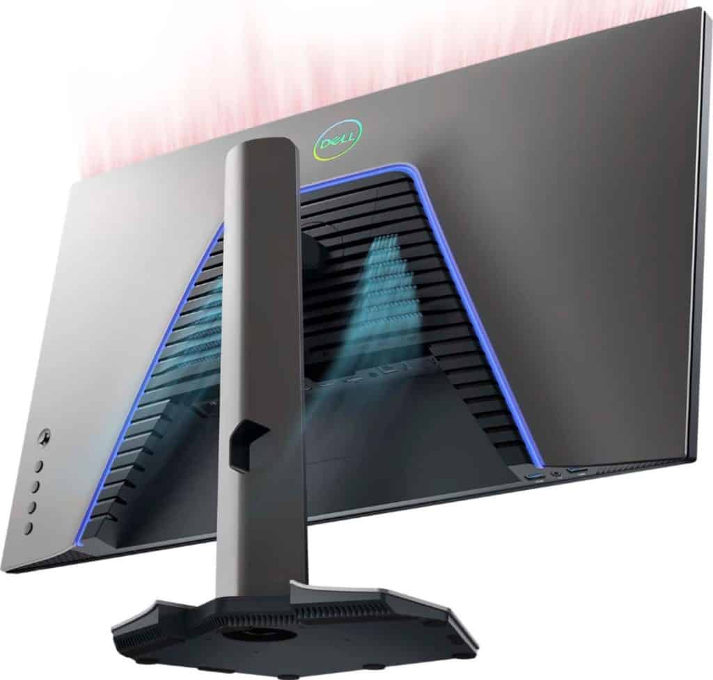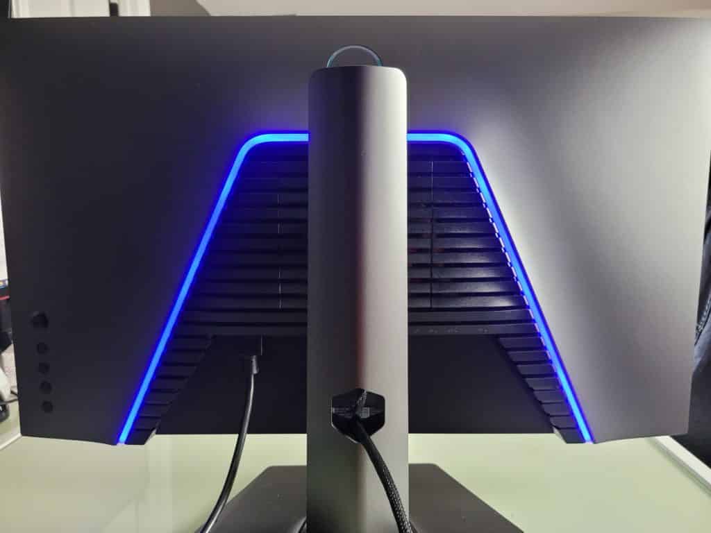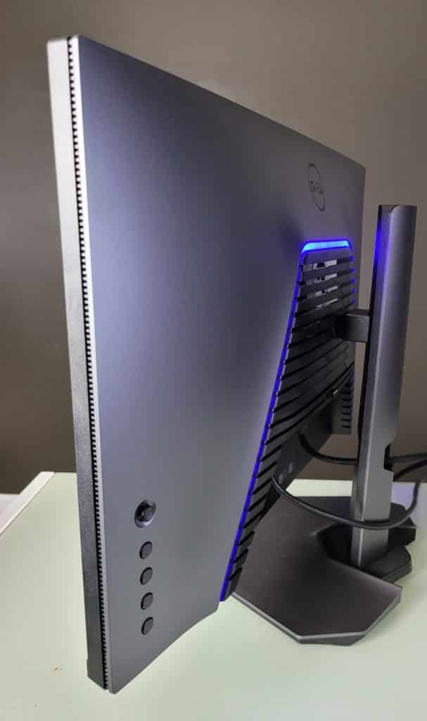 The most distinct addition to the Dell S2721DGF the vents at the rear that is surrounded by a blue LED strip. The former is designed to help the monitor breath so it doesn’t overheat after long hours of gaming. The LED light casts a gentle glow on a setup, but it’s limited to one color so many will most likely turn it off.