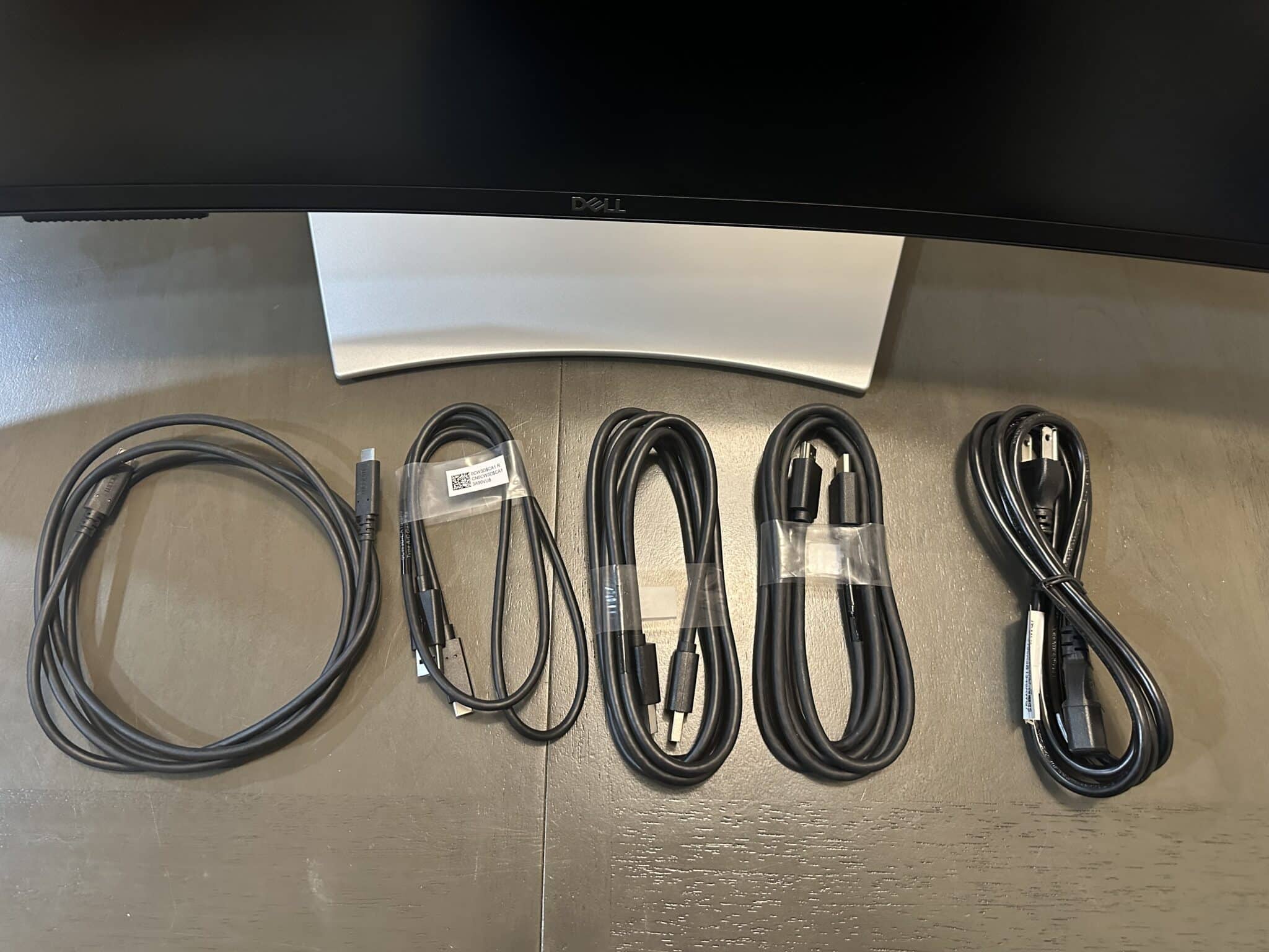 The Dell U4025QW’s package doesn’t include a lot of accessories, but all the necessary cables are already included. You get one each for DisplayPort, HDMI 2.1, USB-C Thunderbolt, USB-C to USB-A, and for power. That’s all you will need to maximize the monitor, except maybe if you want to connect LAN and a speaker to it.