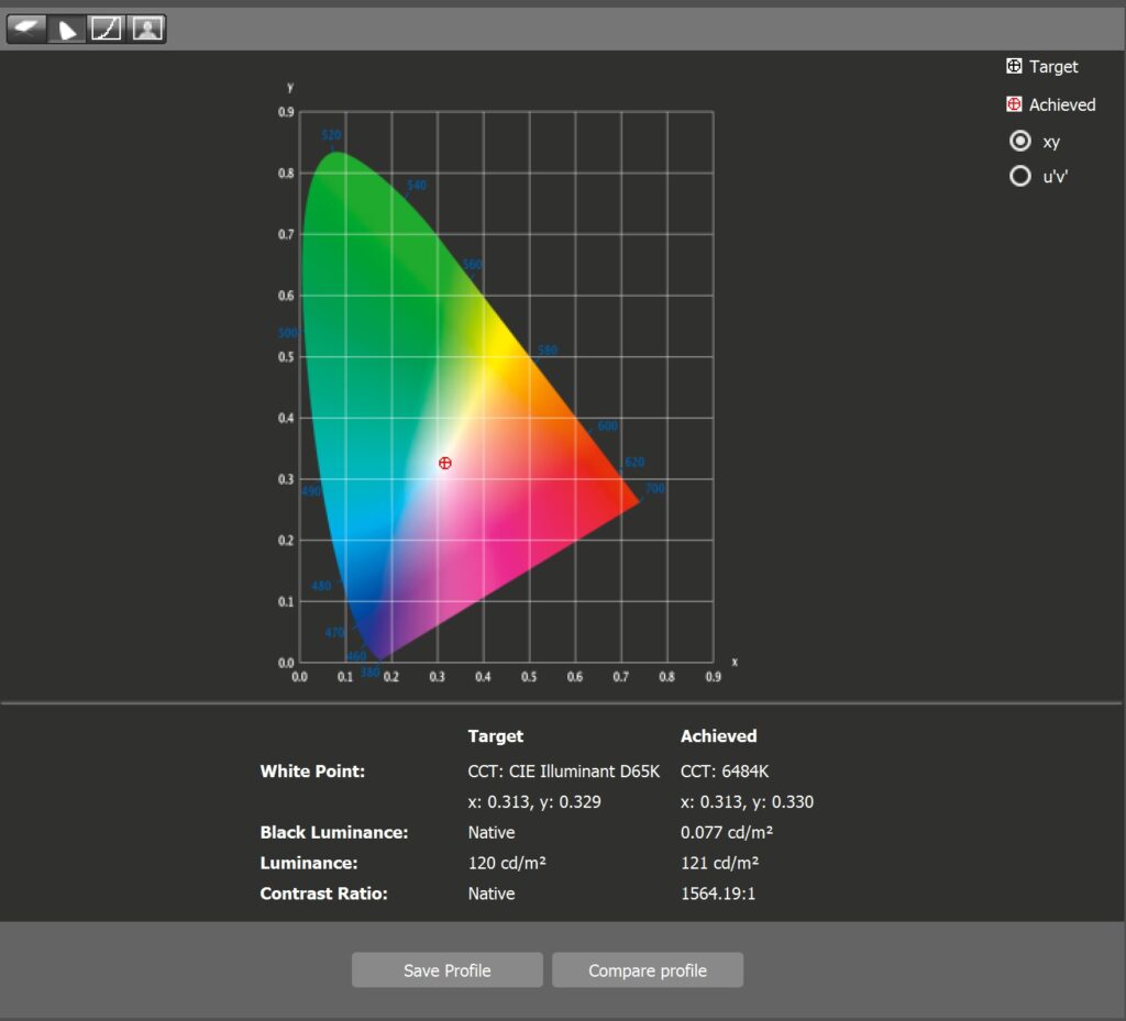 The Dell UltraSharp U3224KB’s backlight reached 488 cd/m2 at 100% but peaked at 617 cd/m2 when HDR was active. Its contrast ratio reached 1564.19:1 at 34% or 120 cd/m2 brightness. However, the product has an excellent black luminance of only 0.077, so it’s more capable when it comes to dark scenes, as promised by the panel tech.