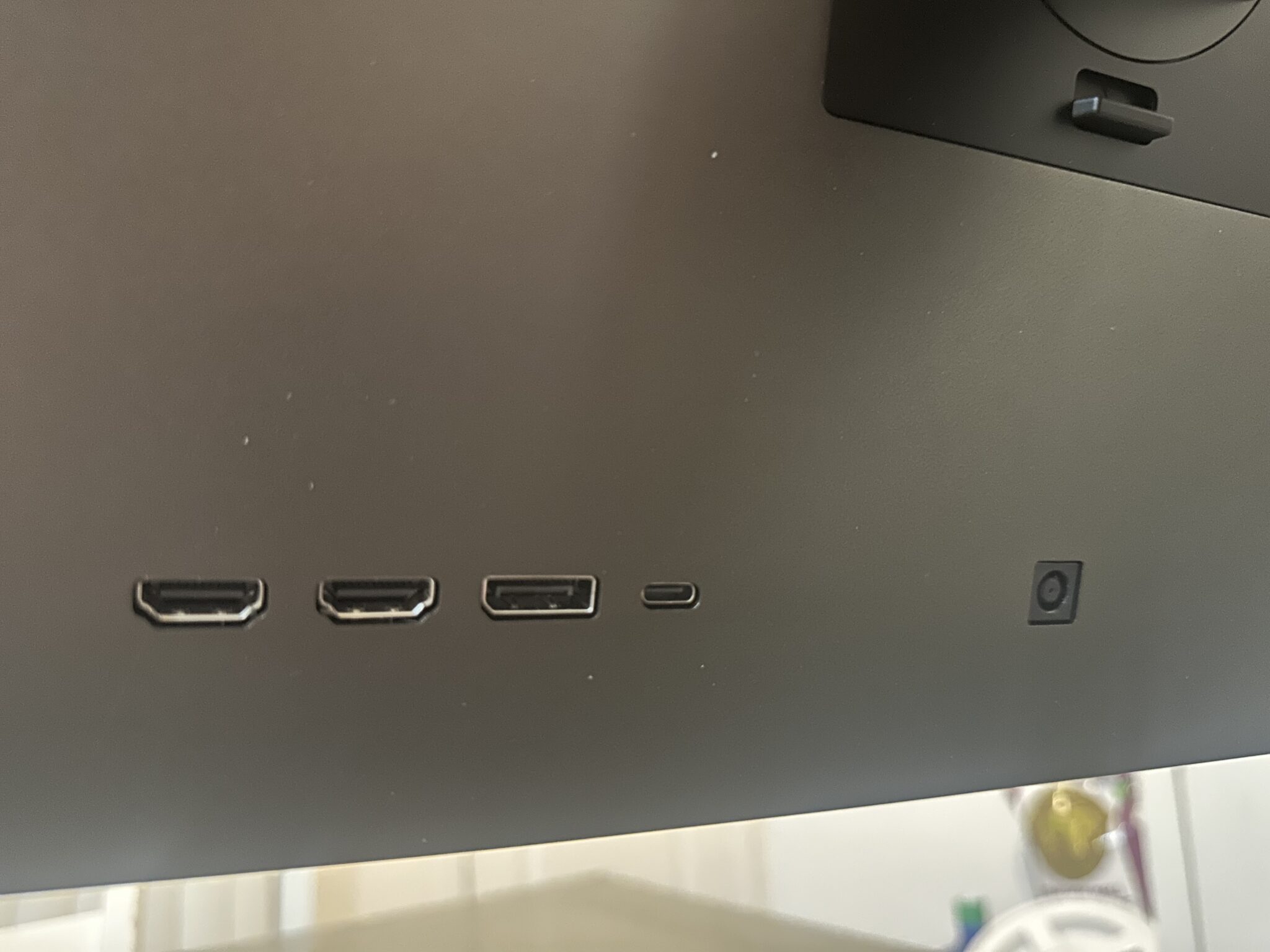 The hubless Dough Spectrum Black ES07E91 version only has DisplayPort 1.4, two HDMI 2.1 ports, and a USB-C slot for firmware upgrades. You can choose a variant with USB-C DP Alt Mode and USB-A slots if you need them, but that will cost slightly more than the unit that was given to us. We’d rather have the dubbed version, but it’s always nice to have an option that drops the price of something that’s this expensive.