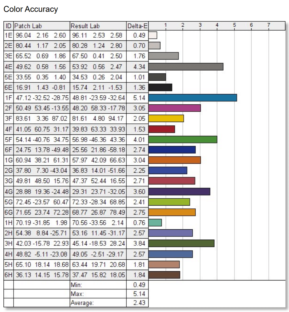 The Dough Spectrum Black ES07E91 covers 100% sRGB and 94% DCI-P3 for great color in games and movies. Its default accuracy had a deltaE average of 2.43, so it’s decently accurate and out of the box. The monitor also has an sRGB and DCI-P3 mode with a dE average of 1.65 and 1.73, respectively, so you can easily switch it down if you need it for editing work or content creation.