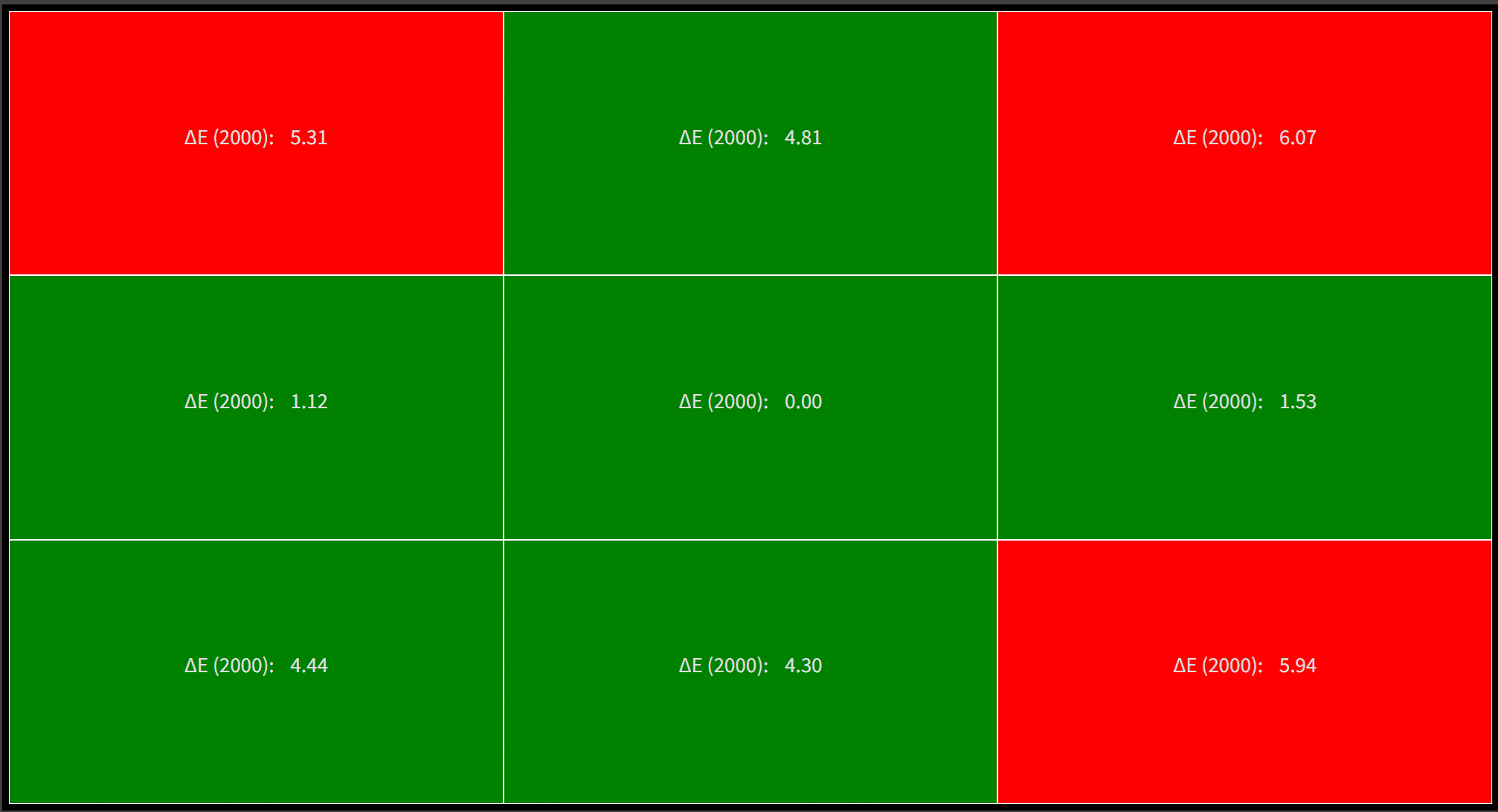 Panel uniformity was a bit off for this model, with the top and bottom right edges having variances that go over the typical threshold. However, it is not noticeable up front, and there is no backlight leak since the panel is self-illuminating. The only issue with OLEDs is their susceptibility to burn-in, but the manufacturer has already installed multiple safeties for this excellent product.