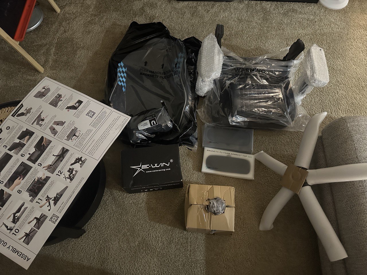 This chair is humongous, so the box it arrives in is equally proportioned to accommodate its tall backrest and wide seat. Make sure that you open it from the top so you can pull out its parts according to the order described by the massive assembly card. We placed it next to a Sihoo M57 ergo chair, which is already pretty big for its class, just to show its scale in the photo below: