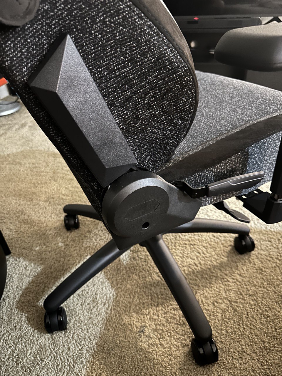 We love that the armrest, neck pillow, and panel covers are magnetic instead of screwed or strapped into the chair. The only parts you need to screw in are the backrest to the seat itself plus the tilting base under that. Everything else just snaps into place, like the base, gas lift, and tilt base.