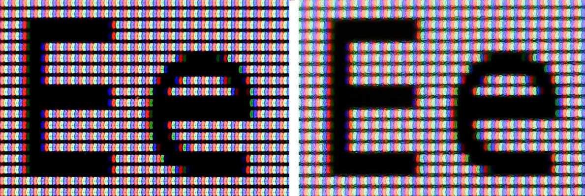 As shown above on the image from TFTCentral, each of the subpixels is crisper, clearer, and more vibrant on the left versus the one on the right which has AG coating. This translates to the images you see, making them more attractive and eye-popping. This also applies to text clarity so letters and numbers will look less fuzzy and therefore easier to read, as shown below.