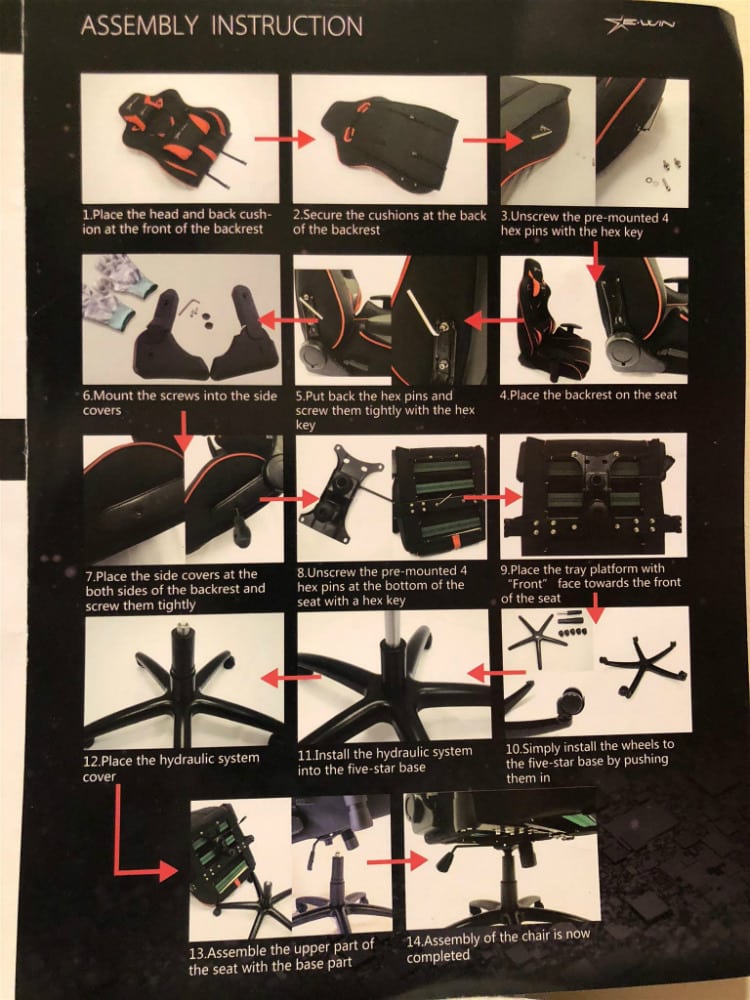 Assembly takes anywhere from 15 to 25 minutes with minimal tool usage experience, so practically anyone can set the EWin Racing Champion up. Once you’ve screwed on the parts that require a hex key, its pretty much just sliding and inserting the sections together.