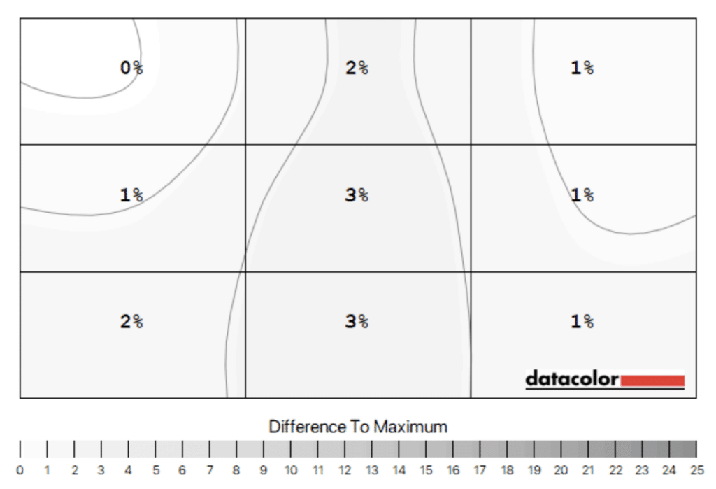 Panel uniformity for the test sample was excellent since there were no perceivable variances from edge to edge. The colorimeter only saw a 3% difference at maximum, so it won’t be visible 99% of the time. This can change due to tolerances, so it’s possible to get a unit with some issues.