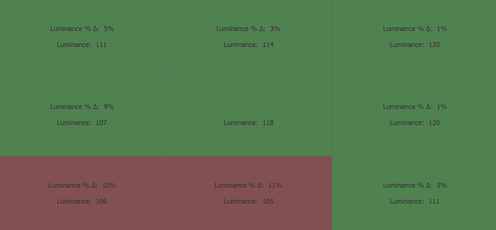 Panel uniformity for the test sample wasn’t perfect since the lower edge towards the left of the screen was dimmer by 10% from the center. It wasn’t noticeable in games, but dark scenes or images can reveal the flaw. Note that this can change with every unit made due to tolerances, so there are better units out there.