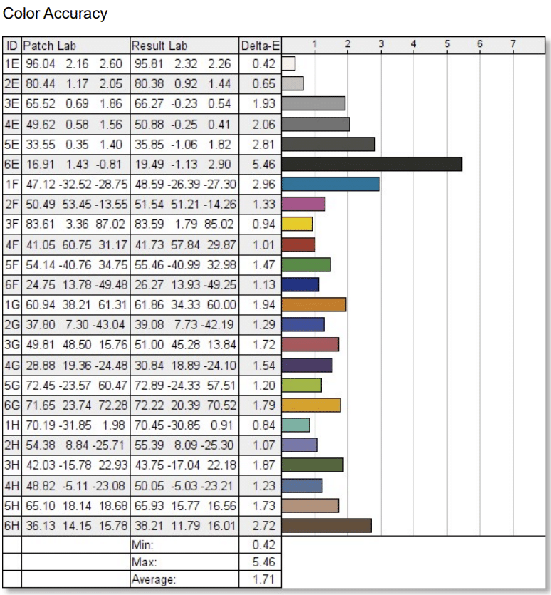 Calibrating the monitor with the Spyder Elite reduced the dE average to an excellent 0.54. it didn’t do well with the Calibrite Display Plus since it actually made the dE worse when we used it. But the bottom line is that it can be fine-tuned for editing and content creation.