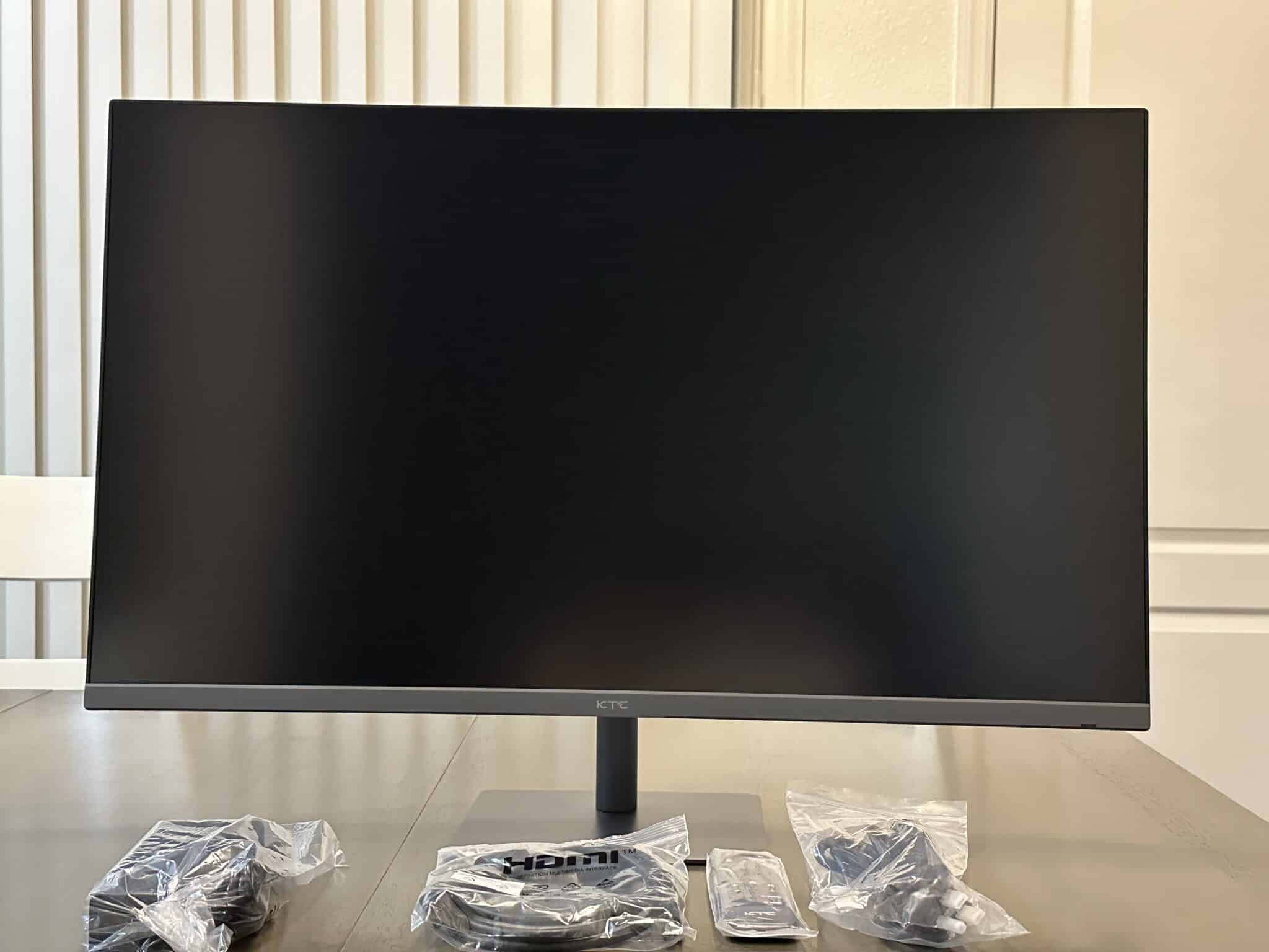 The KTC A32Q8 looks simple, but it doesn’t appear cheap like some budget options out there. The monitor has a matte black finish and a gunmetal cabinet so it looks clean and sophisticated like most TVs. The screen has thin bezels on three sides, but it still has inner borders like most modern monitors.