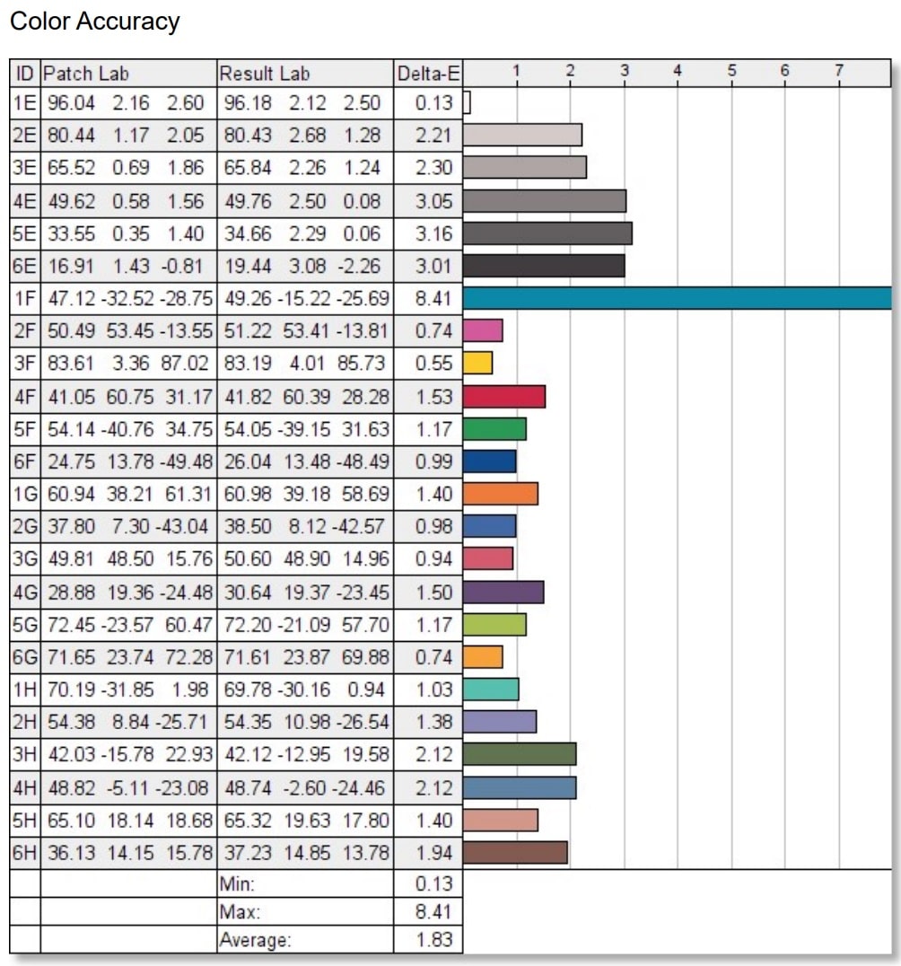 The KTC H32T13 covered 96% of sRGB and 73% of DCI-P3, so it is not as vibrant as most modern IPS models. Its default accuracy had a deltaE average of 1.83, so it is decent out of the box. Most users won’t need to calibrate it for daily use since it’s already balanced out of the box.