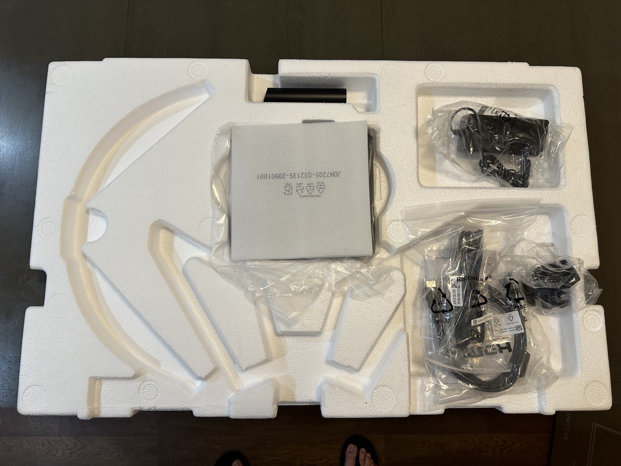 Unboxing the monitor was straightforward, but it does come fully disassembled. The base arrives in three different pieces, and we recommend building that first before inserting it into the chassis, even if the instructions say otherwise. You will need to connect small screws into tight spots, and it is going to be more difficult if done as intended.