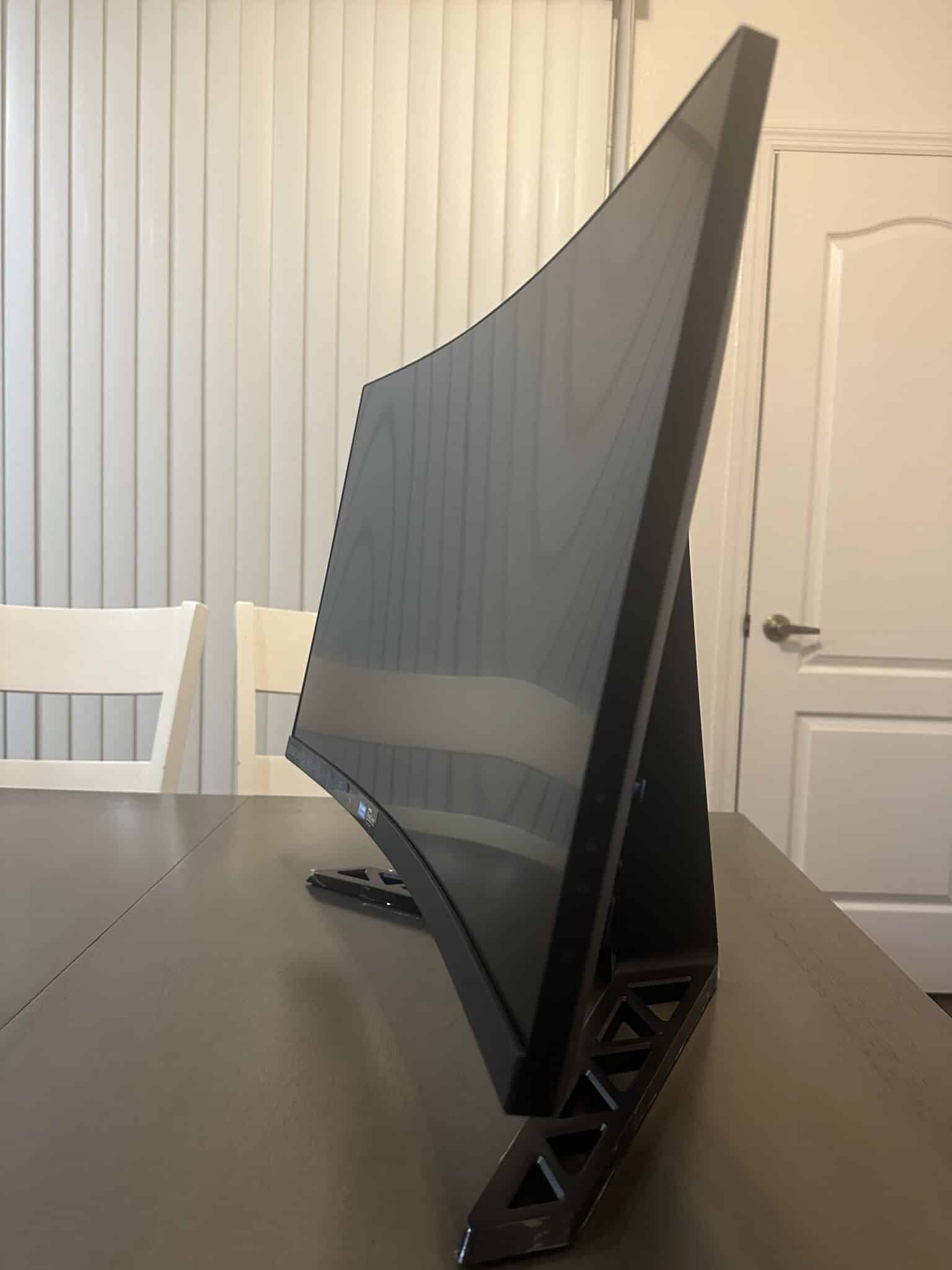 This monitor is larger than most 1080p displays, but its not oversized by today’s standards. Its only two feed wide, but its extra depth due to the overdesigned base might be an issue for some who have shallow desktops. Its lightweight at 13.7 pounds, so it shouldn’t be too difficult to move it around if needed.