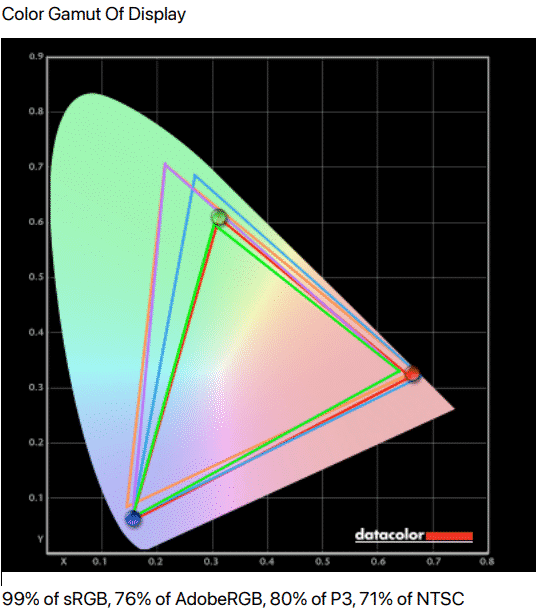 The Lenovo ThinkVision P34w-20 renders 99% sRGB and 80% DCI-P3 for full vibrancy and correct saturation. Its not the most accurate out of the box, but its deltaE average of only 2.15 means most won’t feel the need to calibrate it. It is ready for use right away unless your work involves photo and video editing.