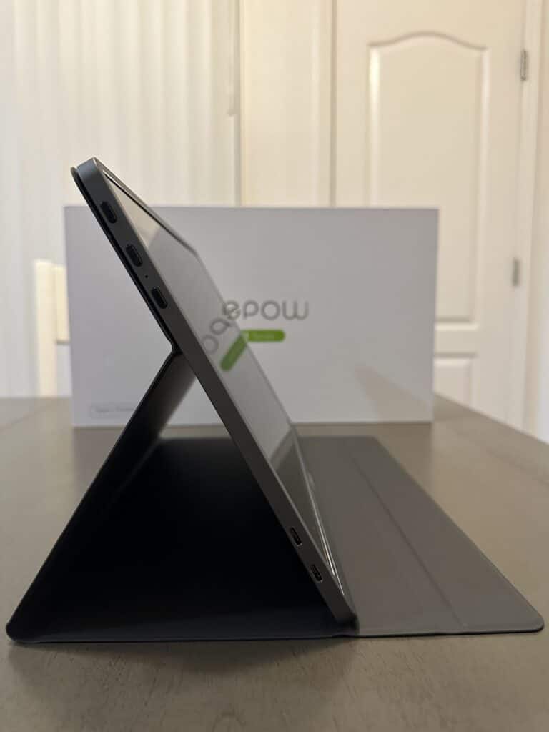 The monitor itself and its folio cover won’t need a lot of space, so you can probably squeeze it into your laptop sleeve if it has a bit of stretch. It’s also very lightweight for its size at 1.69 pounds, so adding it won’t wear you down. Its dimensions will only become an issue if you have a notebook-sized device like a 13 or 14-inch computer like certain MacBooks.