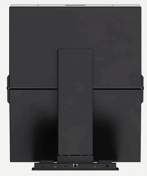 It’s obviously larger than most monitors, but it’s shallower when it’s straightened out. The device only needs 4.33 inches of depth from your desk, but leave some room in front of it since the lower display will extend toward you when you angle it down. The whole unit weighs in at 20 pounds, so it is quite hefty and not portable at all.