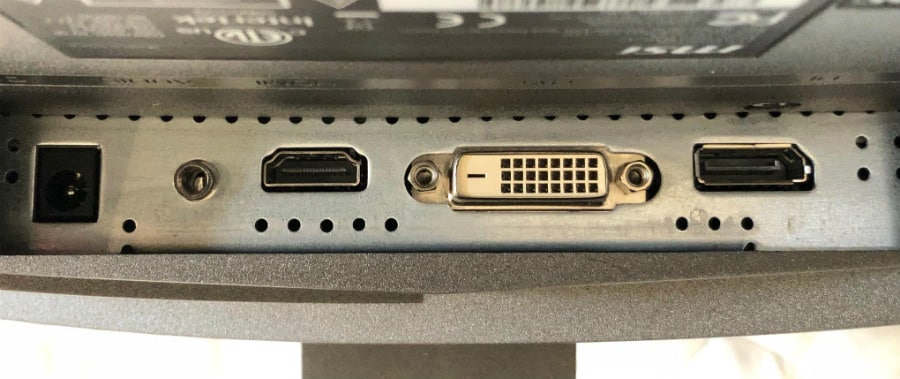 Connectivity features on the MSI Optix MAG24C are reasonable at best since there are no valuable extras such as USB slots. You do get DisplayPort 1.2, HDMI 1.4, and DVI-DL for video inputs so that you can connect multiple devices such as a gaming PC and a console like the PS4 Slim. All of the monitors in this series feature the same layouts, except for the 1440p variant since it utilizes HDMI 2.0 to support its full refresh rate.