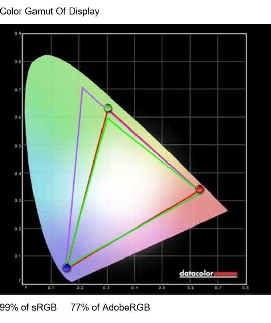 The Pixio PX247 reproduces 99% of the sRGB gamut, but its color accuracy is dismal with a DeltaE average of 4.9 which simply too high. The color temperature exceeds the 6500K greatly, so the screen has a bluish tint which is most noticeable when viewing white backgrounds. This means that factory-calibration was not applied, so you have to do it manually to get better results.
