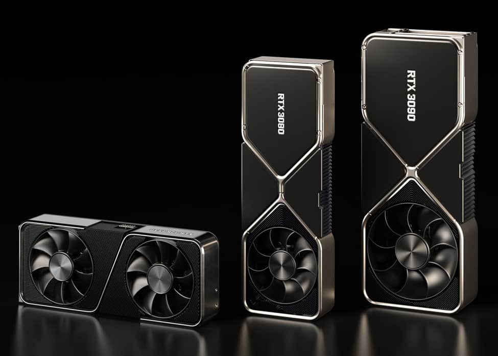The top of the line $1499 RTX 3090 headlines this series and is the largest GPU based on the initial specs. The 3-slot card measures over a foot long and almost six inches wide, but what’s most impressive is its claimed performance. The card is said to be suitable for 8K 60Hz gaming which would translate that it will be capable of 120Hz 4K easily in single card configurations.