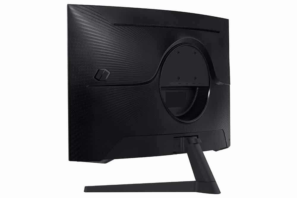 The Samsung Odyssey G5 S32AG55 is a direct refresh of its predecessor, so they share the same aesthetics and proportions. The monitor has a textured matte black finish which helps it blend in with any kind of setup. This model is bezel-free on three sides, although you will still see inner borders on them if you look close enough.