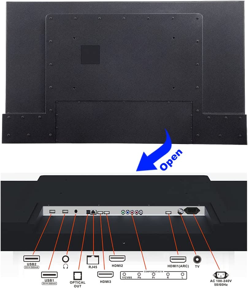 - Connectivity: HDMI 2.0 x 3, TOSLINK Optical x 1, USB 2.0 x 2, AV Connection x 1, RJ45 x 1, Bluetooth and WiFi Wireless, 3.5mm Jack