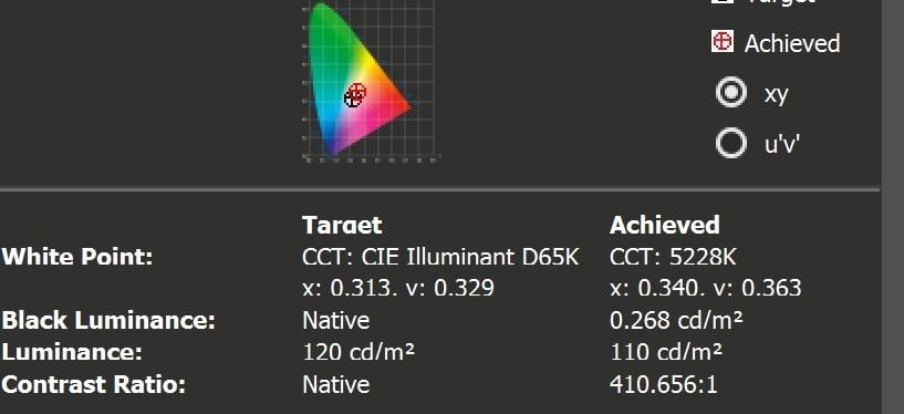 Calibrating the monitor with the SpyderV and Display Plus colorimeters did not help. In fact, using them made the dE average worse to around 7.68. The TV doesn’t have RGB sliders like a monitor, so your only choice is to use its standard mode. It has other filters, but they don’t offer improvements in our eyes.