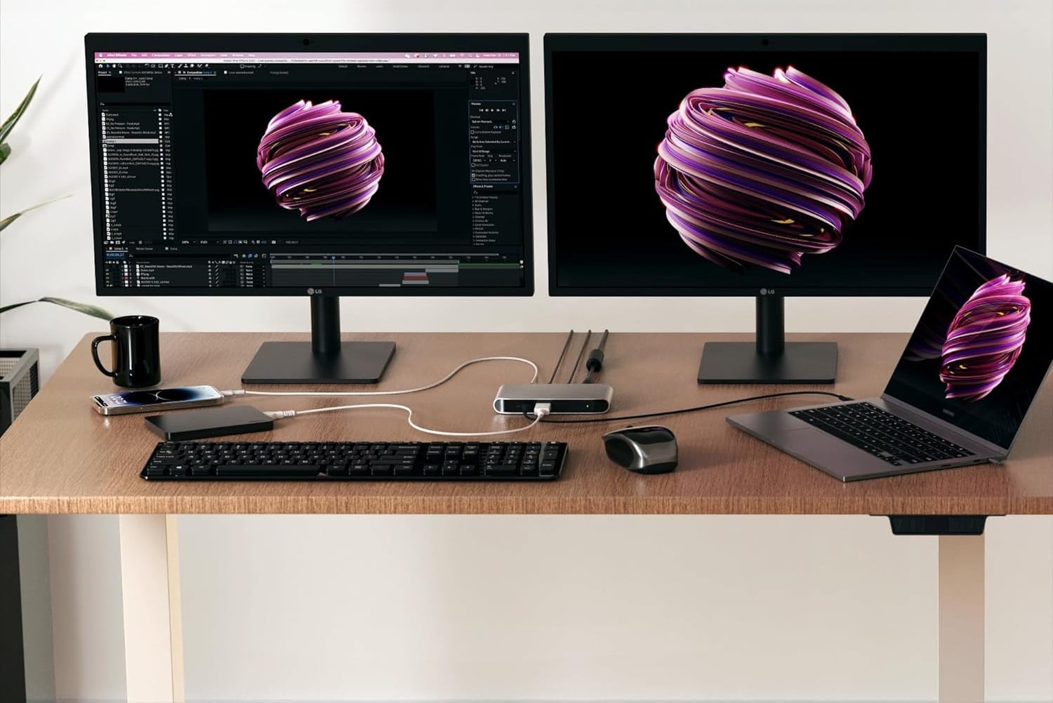 Adding a connectivity hub with flexible connectors will also tidy up your setup while making it look like it means business. Hubs typically include more USB ports and either an HDMI, DVI, VGA, or DisplayPort slot for your peripherals. The newer models often use USB-C slots to connect to your PC to handle and provide all the necessary bandwidth for the inputs as mentioned above.