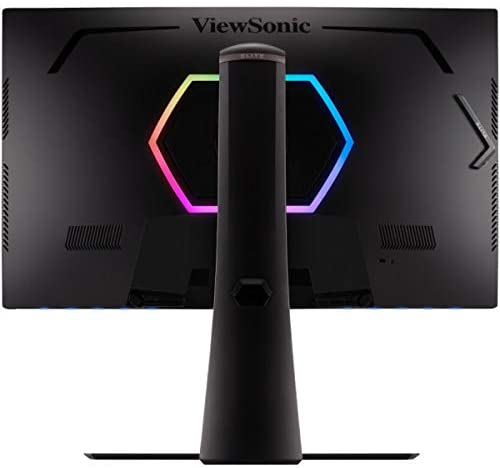 The ViewSonic XG270 has an RGB lighting feature shaped into a hexagon at the back, surrounding its VESA attachment point. The LEDs are bright enough to cast a bias light if you have a monitor close to a wall to help keep your eyes comfortable during extended use. ViewSonic is part of the RGB alliance, so the lighting can be controlled with popular ecosystems such as Razer’s Chroma or Coolermaster’s MasterPlus+.