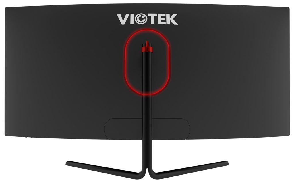 The Viotek GNV34DBE isn’t as garish-looking as some of the brand’s gaming products, and we think that’s a good thing so it can satisfy a wider audience. The monitor has a matte black finish accented with a red LED ring at the rear. The screen is bezel-free on three sides, but you will still see panel borders when the display is in use.